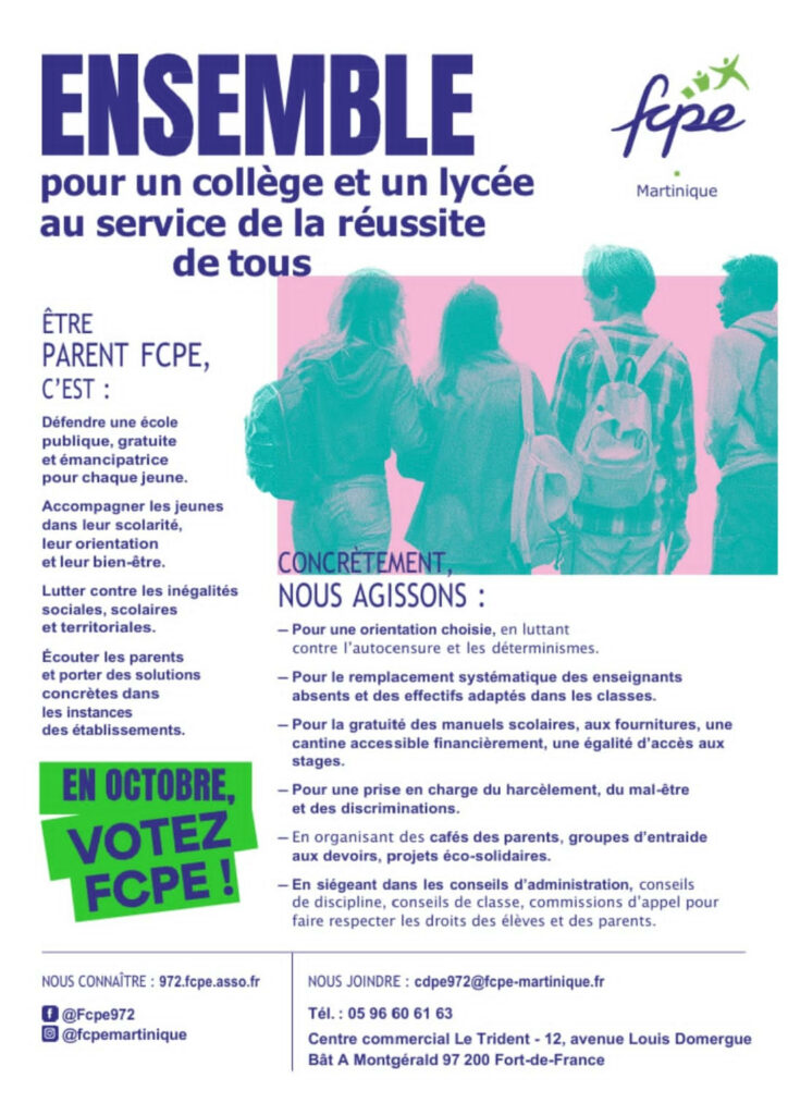 En 2025-26, j’adhère à FCPE MARTINIQUE !